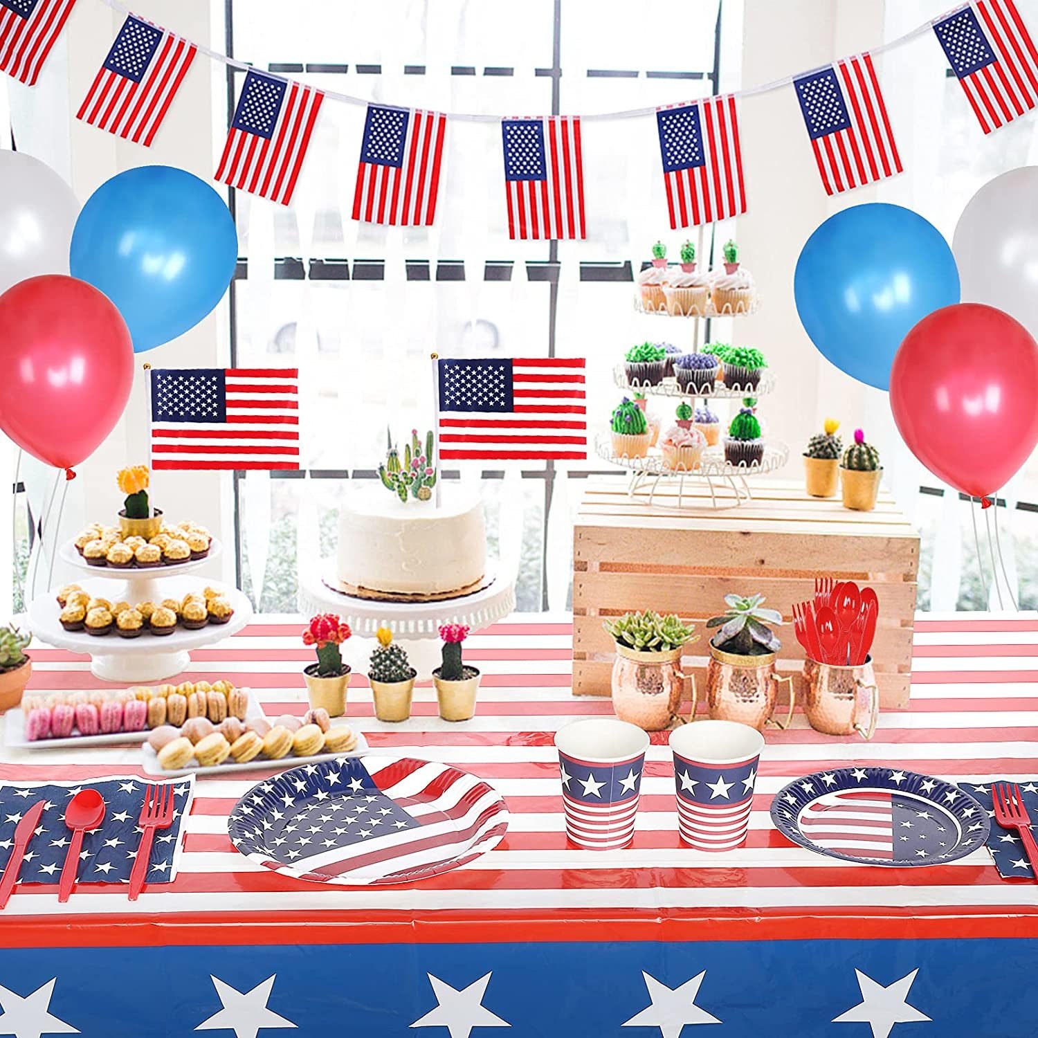 4.[WIDE APPLICATION]: Decorate your table with these Patriotic tablecloths and show your American spirit. A perfect match as Forth of July party decorations, Patriotic party supplies, Independence Day, Memorial Day and Veterans Day decorations.