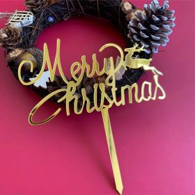 Double-layer Snowflake Happy New Year Acrylic Cake Insert Plate Dessert Table Decoration (Option: Gold red)