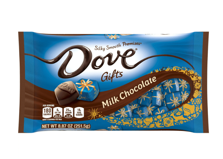 Contains one (1) 8.87-ounce bag of DOVE PROMISES Holiday Gifts Milk Chocolate Candy