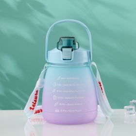 1300ml Motivational Water Bottle with Time Marker; Shoulder Strap & Straw - Perfect for School; Sports; Camping - 44oz Cute Design for Girls & Kids (Color: Blue)