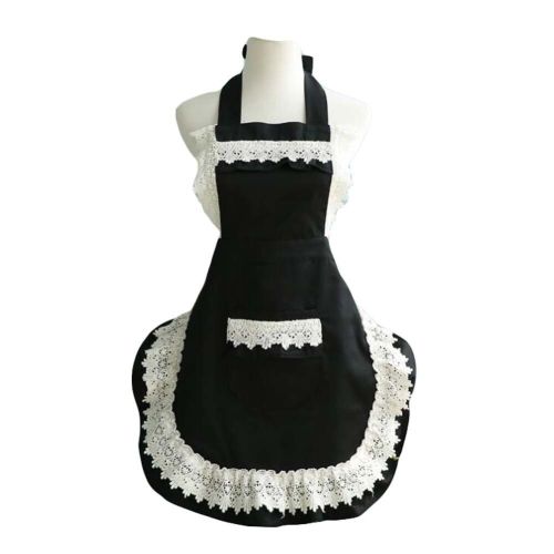 Retro Black Halter Backless Apron Work Uniform for Waitress Beauty Smock Maid Costume Retro Black Halter Backless Apron Work Uniform for Waitress Beauty Smock Maid Costume