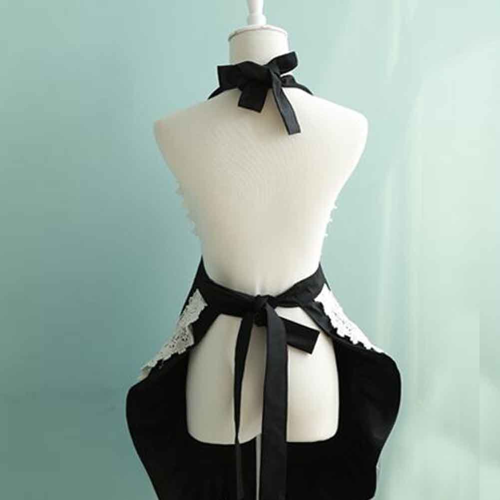 Retro Black Halter Backless Apron Work Uniform for Waitress Beauty Smock Maid Costume