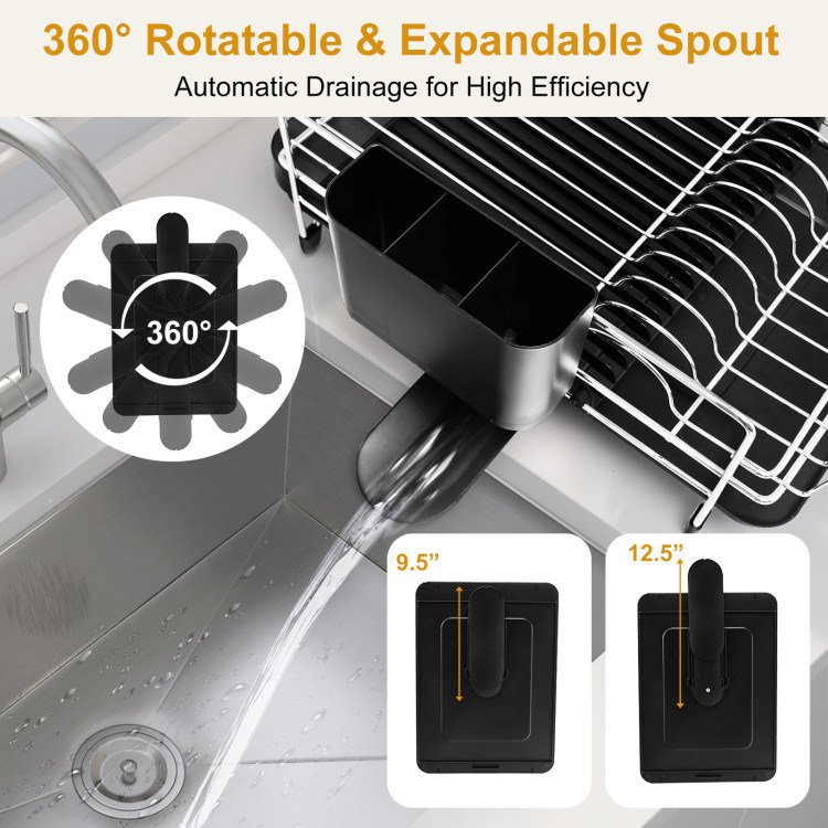 Stainless Steel Expandable Dish Rack with Drainboard and Swivel Spout