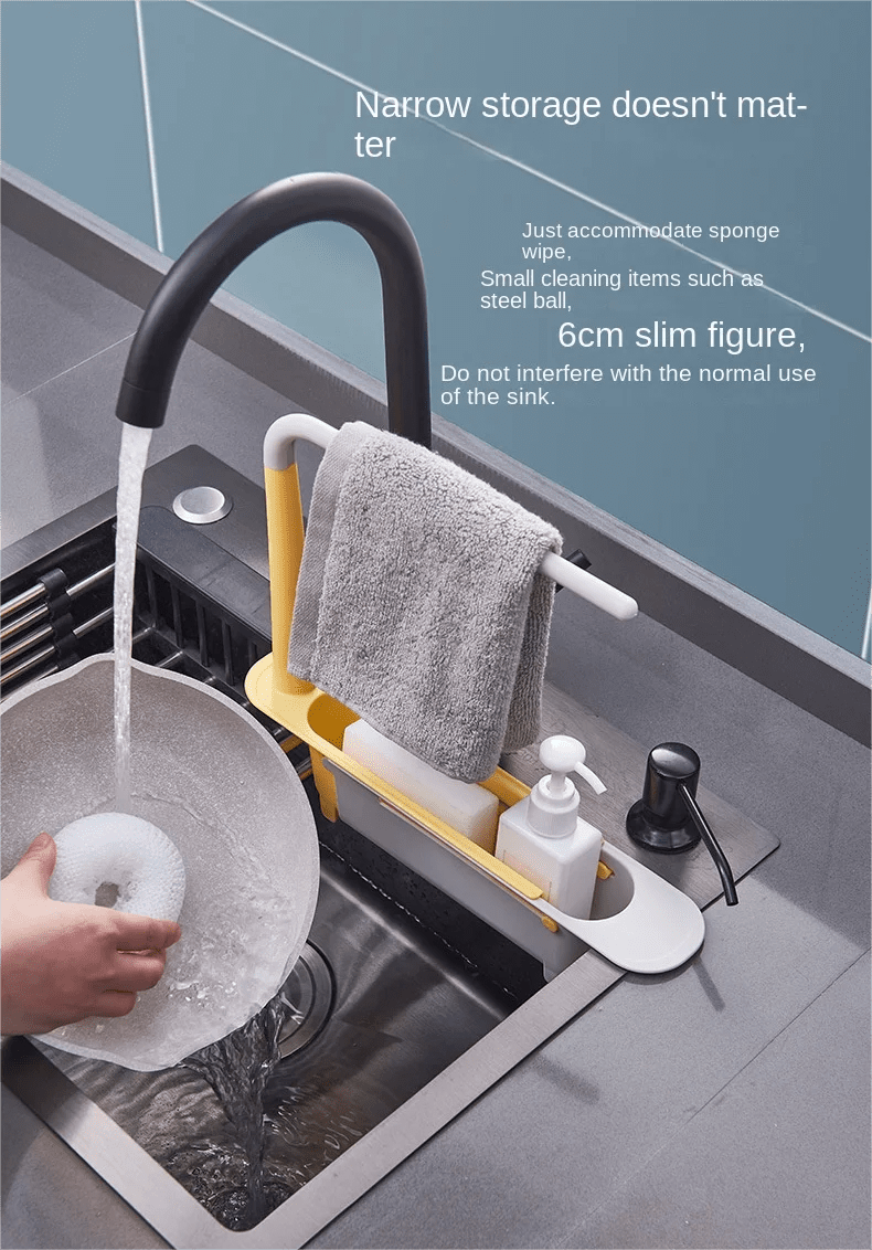 Home > Telescopic Sink Storage Rack Holder Adjustable Telescopic 2-in-1 Sink Storage Rack Holder with Dishcloth for Home Kitchen